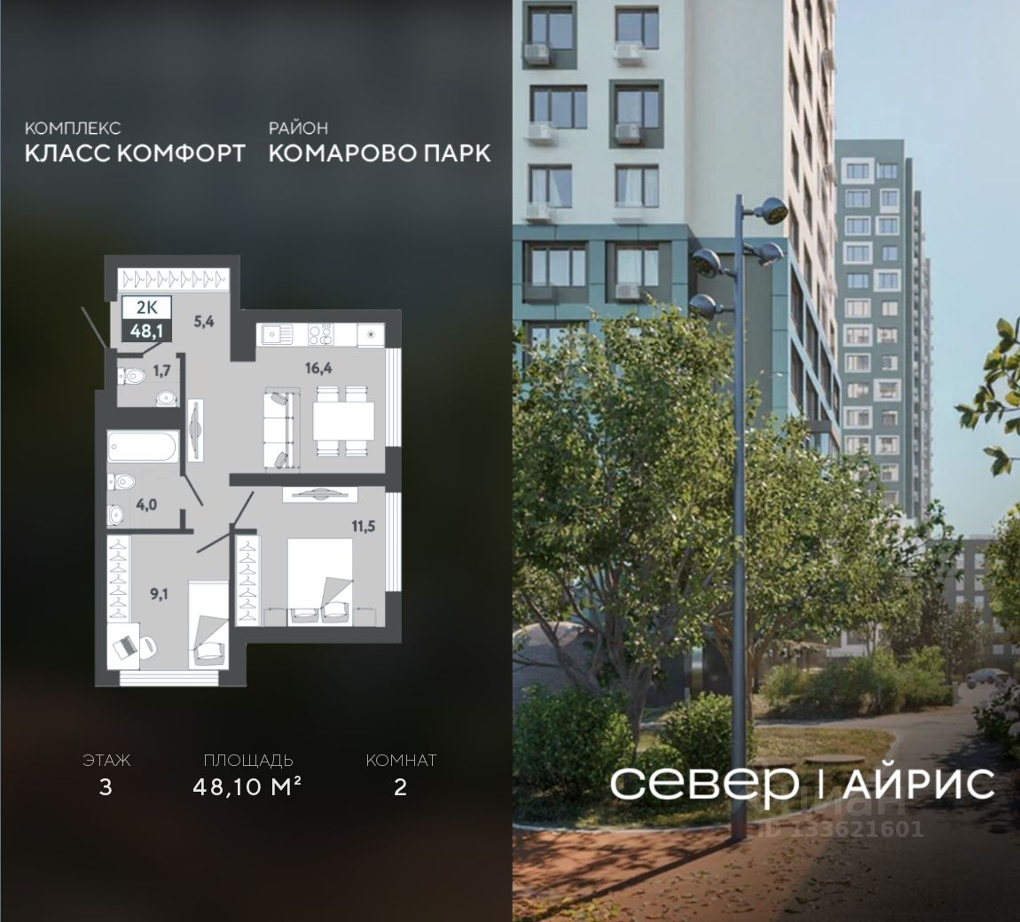 Продаётся квартира площадью 48.10 м2 в жилом комплексе "Айрис".