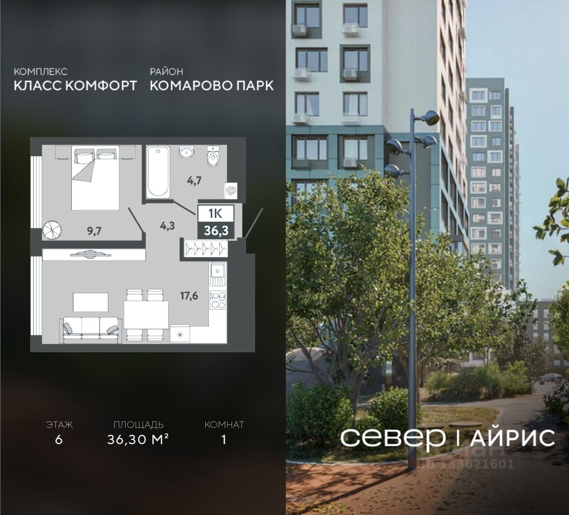 Продаётся квартира площадью 36.30 м2 в жилом комплексе "Айрис".