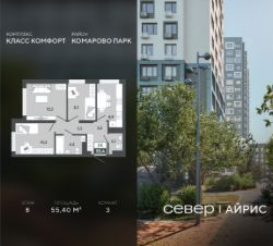 Продаётся квартира площадью 55.40 м2 в жилом комплексе "Айрис".
