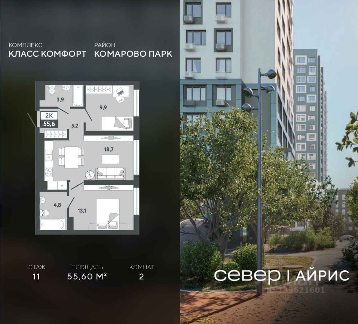 Продаётся квартира площадью 55.60 м2 в жилом комплексе "Айрис".