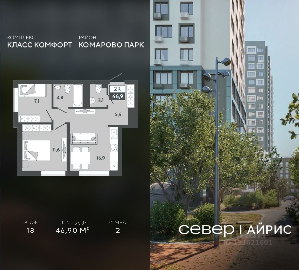 Продаётся квартира площадью 46.90 м2 в жилом комплексе "Айрис".