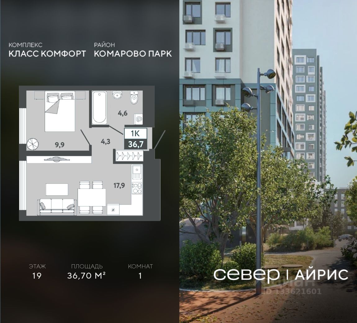 Продаётся квартира площадью 36.70 м2 в жилом комплексе "Айрис".