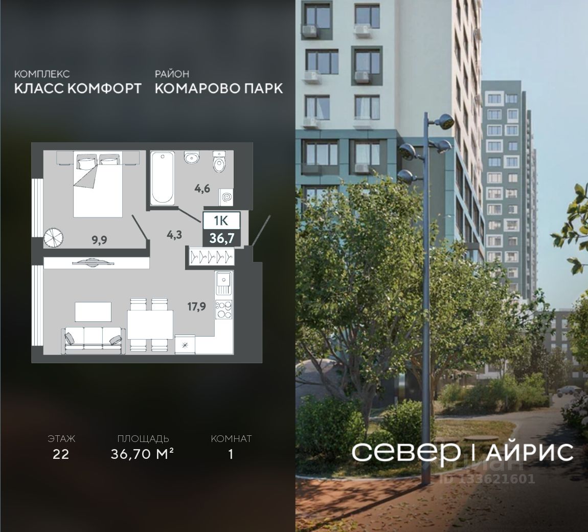 Продаётся квартира площадью 36.70 м2 в жилом комплексе "Айрис".