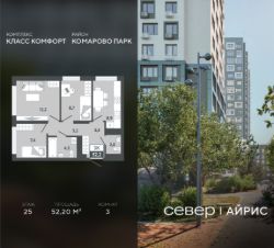 Продаётся квартира площадью 52.20 м2 в жилом комплексе "Айрис".
