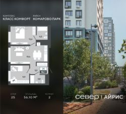 Продаётся квартира площадью 56.10 м2 в жилом комплексе "Айрис".