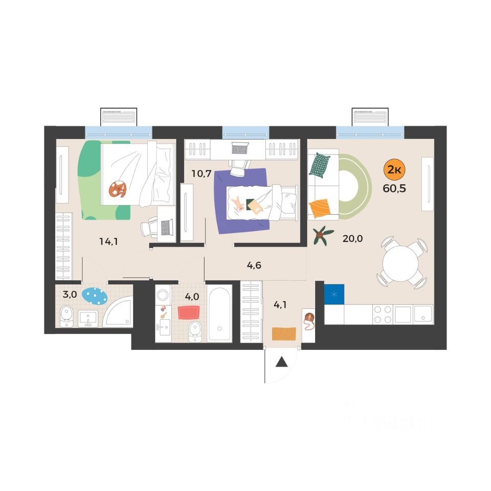 Общая площадь60,5 м²