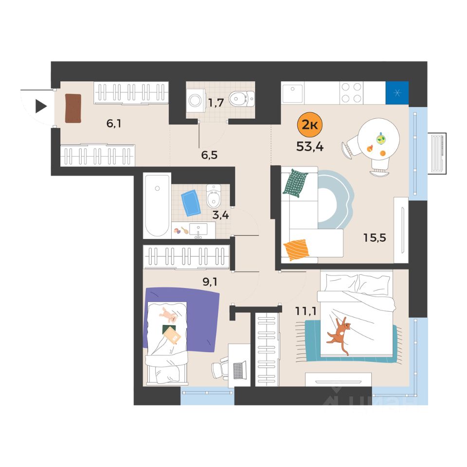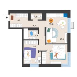 Общая площадь53,4 м²