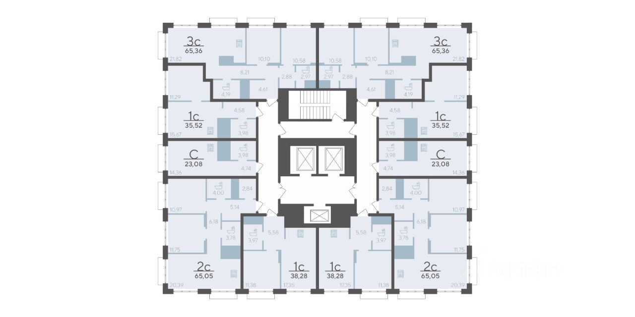 Квартира с двумя спальнями площадью 65.05 кв.м на 13 этаже. Продуманная геометрия комнат позволит легко зонировать пространство для личного досуга и места, где удобно проводить время с семьей или встречать гостей.