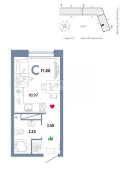 Свeтлая уютная студия c большими окнами 17,8м2.