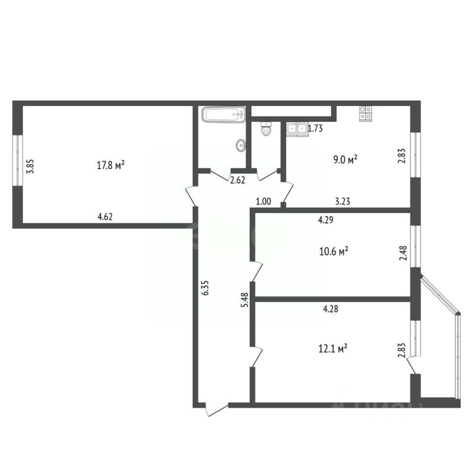 Высота потолков 2,7 м, стены и полы подготовлены для финишной отделки. Санузел раздельный, установлена сантехника эконом-класса. Кухня площадью 9 м² позволяет разместить полноценный обеденный стол и гарнитур. Две спальни (14 и 11 м²) и гостиная (18 м²) дают возможность комфортного размещения семьи.