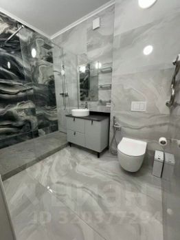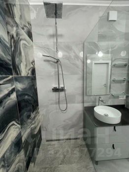 Санузел совмещен. Душевая зона выполнена из стекла и керамогранита.