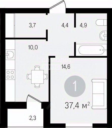 Общая площадь -36.6м2