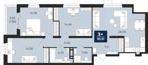 3-комн. квартира с предчистовой отделкой в ЖК "Прео" на 9 этаже. Общая площадь: 93.51 кв.м., жилая: 43.3 кв.м., площадь просторной кухни-столовой: 26.06 кв.м. Угловая квартира, идеально подойдет любителям тишины и панорамных видов. В квартире одна лоджия, два совмещенных санузла. Высота потолков 2.7 м.