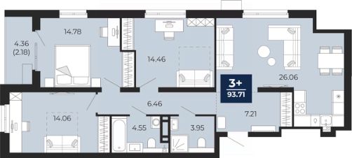 Трехкомнатная квартира от застройщика с предчистовой отделкой в ЖК "Прео" на 14 этаже. Общая площадь: 93.71 кв.м., жилая: 43.3 кв.м., площадь просторной кухни-столовой: 26.06 кв.м. Квартира угловая, идеально подойдет любителям тишины и панорамных видов. В квартире одна лоджия, два совмещенных санузла. Высота потолков 2.7 м.