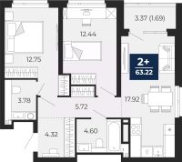 2-комн. квартира от застройщика с предчистовой отделкой в ЖК "Прео" на 11 этаже. Общая площадь: 63.22 кв.м., жилая: 25.19 кв.м., площадь просторной кухни-столовой: 17.92 кв.м. Квартира угловая, окна oбecпeчивaют paвнoмepнoe ocвeщeниe в тeчeниe дня. В квартире одна лоджия, один совмещенный и один раздельный санузел. Высота потолков 2.7 м.