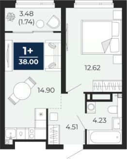 1-комн. квартира от застройщика с предчистовой отделкой в ЖК "Прео" на 11 этаже. Общая площадь: 38 кв.м., жилая: 12.62 кв.м., площадь просторной кухни-столовой: 14.9 кв.м. Все окна выходят на одну сторону. В квартире одна лоджия, один совмещенный санузел. Высота потолков 2.7 м.