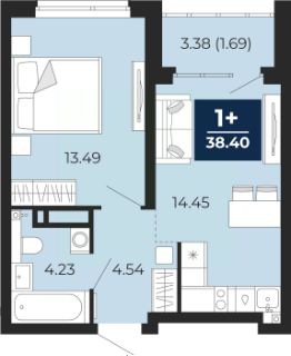 Продается 1-комн. квартира с предчистовой отделкой в ЖК "Прео" на 14 этаже. Общая площадь: 38.4 кв.м., жилая: 13.49 кв.м., площадь просторной кухни-столовой: 14.45 кв.м. Все окна выходят на одну сторону. В квартире одна лоджия, один совмещенный санузел. Высота потолков 2.7 м.