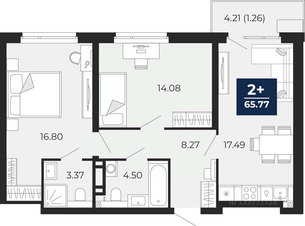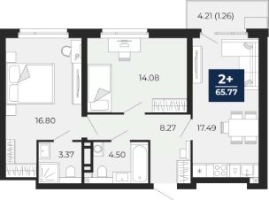 2-комн. квартира от застройщика с предчистовой отделкой в ЖК "Прео" на 10 этаже. Общая площадь: 65.77 кв.м., жилая: 30.88 кв.м., площадь просторной кухни-столовой: 17.49 кв.м. Комнаты изолированные, все окна выходят на одну сторону. В квартире один балкон, два совмещенных санузла. Высота потолков 2.7 м.