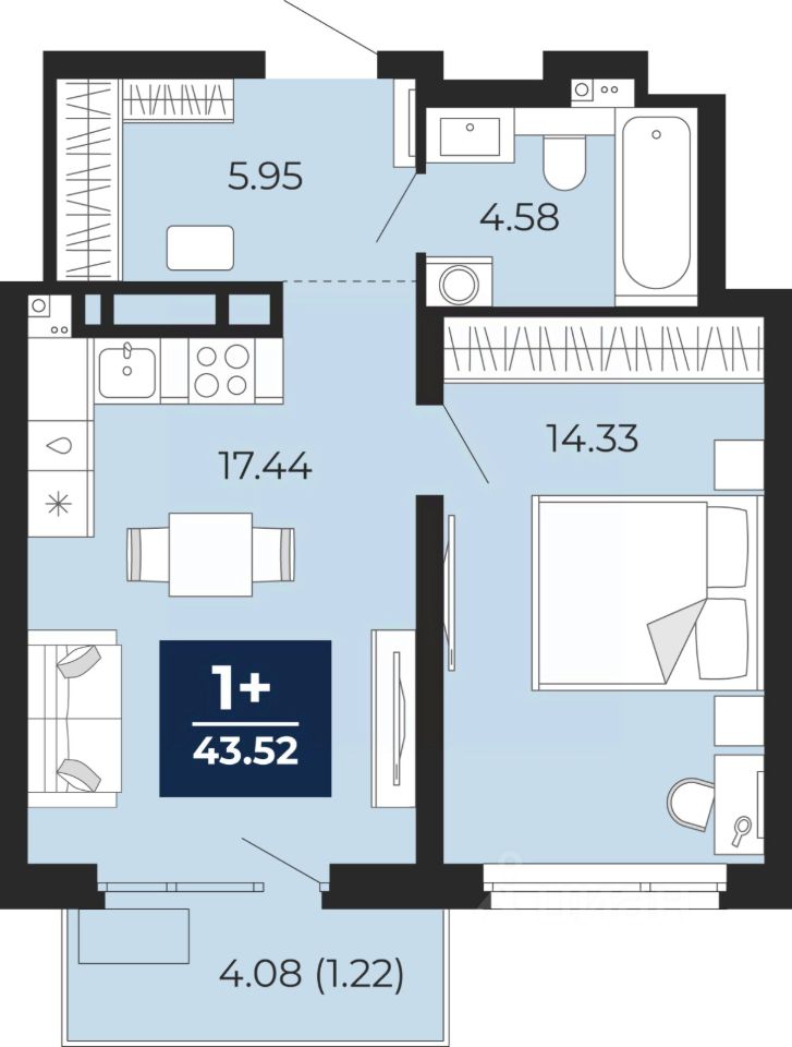 Продается однокомнатная квартира с предчистовой отделкой в ЖК "Прео" на 5 этаже. Общая площадь: 43.52 кв.м., жилая: 14.33 кв.м., площадь просторной кухни-столовой: 17.44 кв.м. Все окна выходят на одну сторону. В квартире один балкон, один совмещенный санузел. Высота потолков 2.7 м.