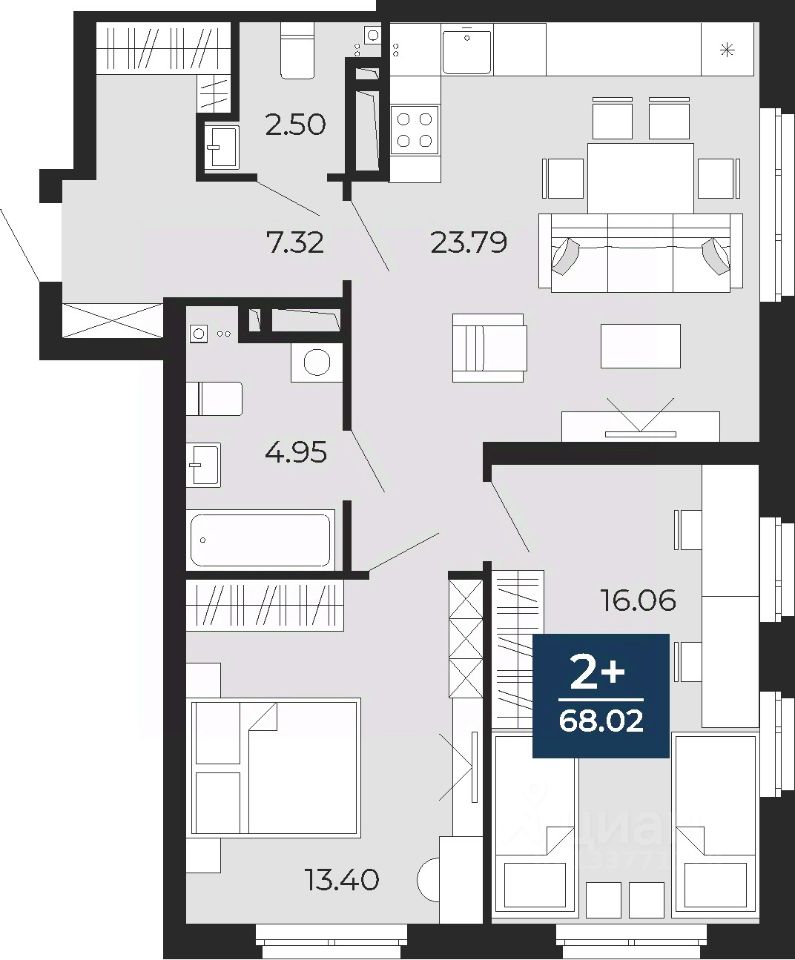 Просторная 2-комн. квартира с предчистовой отделкой в ЖК "Прео" на 9 этаже. Общая площадь: 68.02 кв.м., жилая: 29.46 кв.м., площадь просторной кухни-столовой: 23.79 кв.м. Квартира угловая, очень светлая, естественная вентиляция при открытии окон. В квартире один совмещенный и один раздельный санузел. Высота потолков 2.7 м.