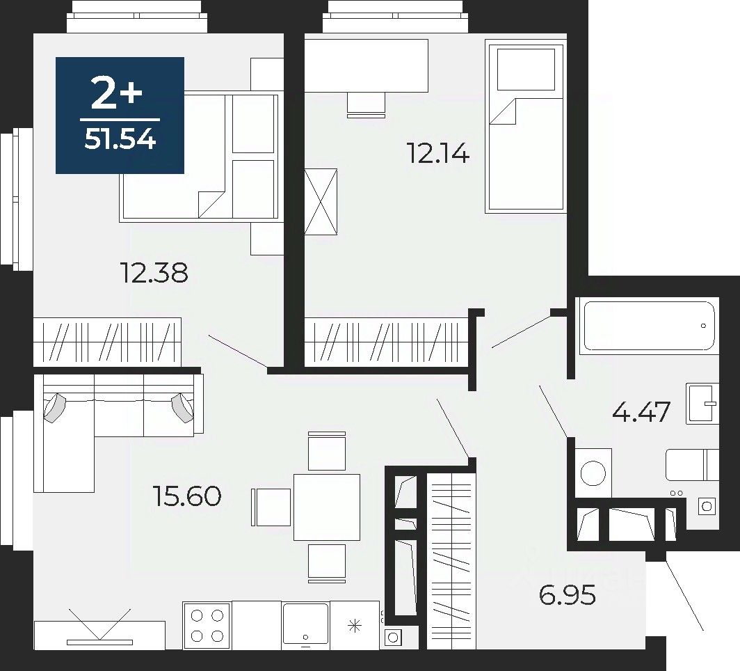 Двухкомнатная квартира от застройщика с предчистовой отделкой в ЖК "Прео" на 24 этаже. Общая площадь: 51.54 кв.м., жилая: 24.52 кв.м., площадь просторной кухни-столовой: 15.6 кв.м. Угловая квартира, идеально подойдет любителям тишины и панорамных видов. В квартире один совмещенный санузел. Высота потолков 2.7 м.