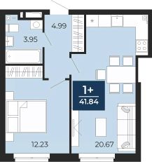 Продается 1-комн. квартира от застройщика с предчистовой отделкой в ЖК "Прео" на 22 этаже. Общая площадь: 41.84 кв.м., жилая: 12.23 кв.м., площадь просторной кухни-столовой: 20.67 кв.м. Все окна выходят на одну сторону. В квартире один совмещенный санузел. Высота потолков 2.7 м.