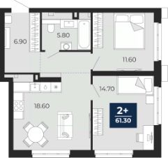 Продается двухкомнатная квартира от застройщика с предчистовой отделкой в ЖК "Айвазовский City" на 2 этаже. Общая площадь: 61.3 кв.м., жилая: 26.3 кв.м., площадь просторной кухни-столовой: 18.6 кв.м. Угловая квартира, идеально подойдет любителям тишины и панорамных видов. В квартире один совмещенный санузел. Высота потолков 2.7 м.