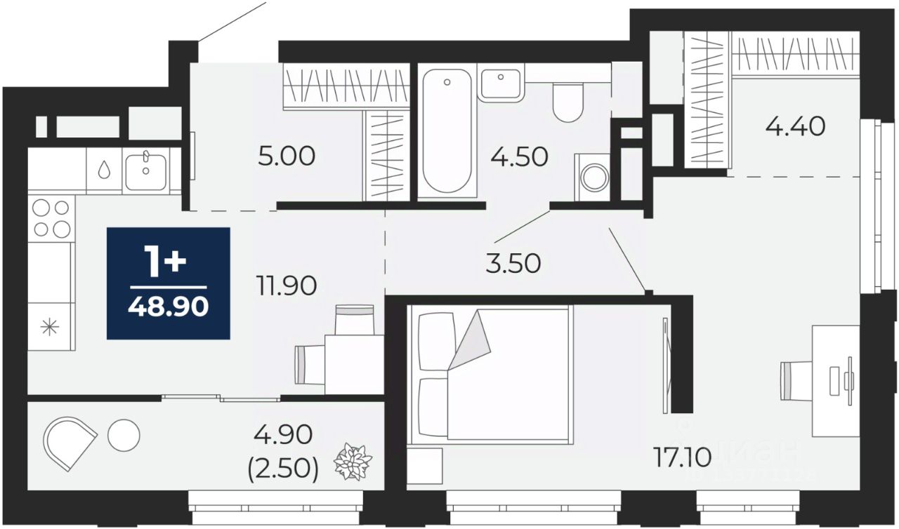 Продается однокомнатная квартира с предчистовой отделкой в ЖК "Айвазовский City" на 18 этаже. Общая площадь: 48.9 кв.м., жилая: 17.1 кв.м., площадь просторной кухни-столовой: 11.9 кв.м. Угловая квартира, идеально подойдет любителям тишины и панорамных видов. В квартире одна лоджия, один совмещенный санузел. Высота потолков 2.72 м.