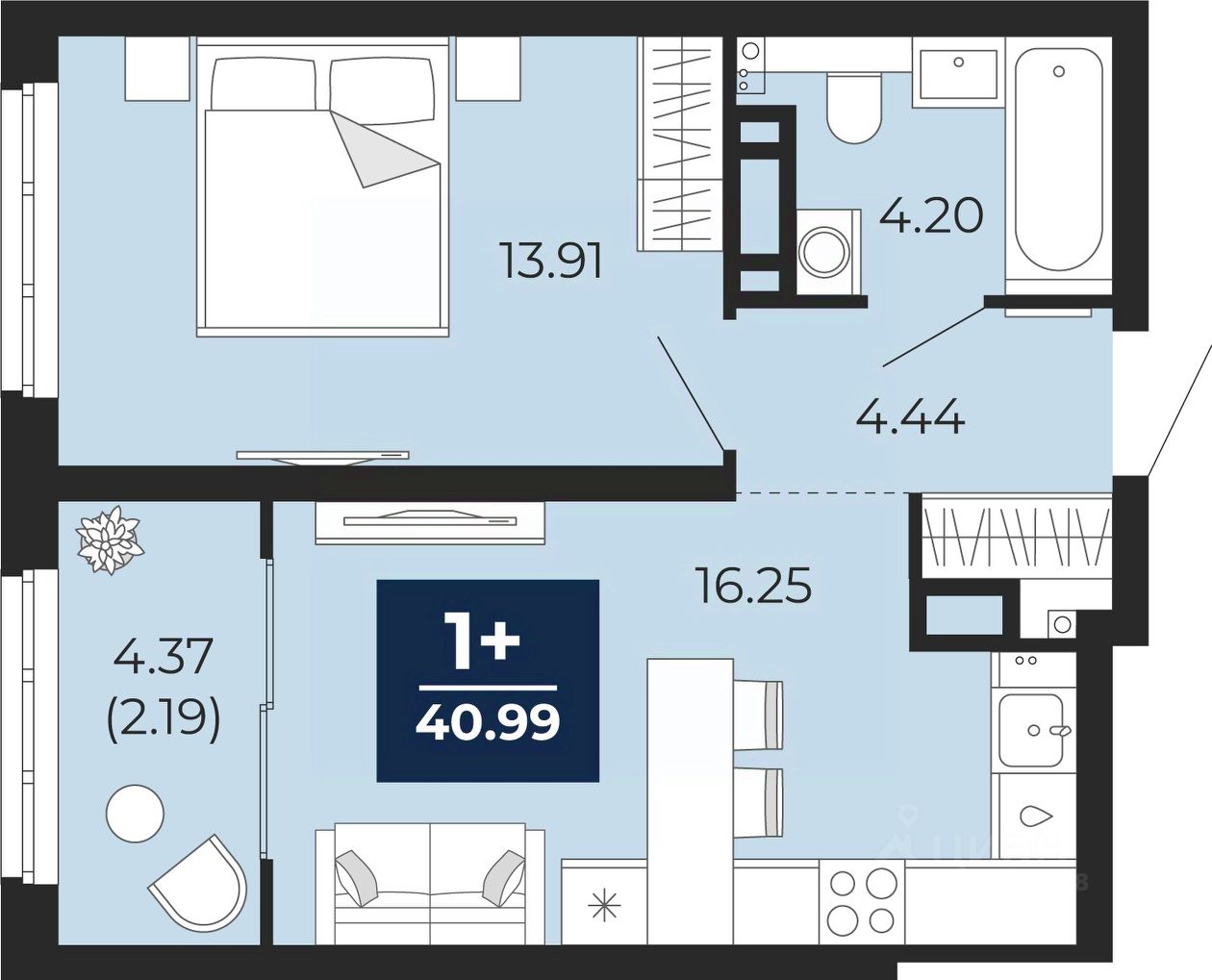 Продается однокомнатная квартира от застройщика в ЖК "Беринг" на 15 этаже. Квартира без отделки, после оформления собственности можно делать ремонт. Общая площадь: 40.99 кв.м., жилая: 13.91 кв.м., площадь просторной кухни-столовой: 16.25 кв.м. Все окна выходят на одну сторону. В квартире одна лоджия, один совмещенный санузел. Высота потолков 2.75 м.