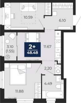 2-комн. квартира от застройщика в ЖК "Беринг" на 16 этаже. Квартира без отделки, после оформления собственности можно делать ремонт. Общая площадь: 48.48 кв.м., жилая: 22.47 кв.м., площадь просторной кухни-столовой: 11.67 кв.м. Квартира угловая, идеально подойдет любителям тишины и панорамных видов. В квартире одна лоджия, один совмещенный санузел. Высота потолков 2.75 м.