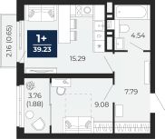 Продается 1-комн. квартира в ЖК "Беринг" на 7 этаже. Квартира без отделки, новый собственник может сделать ремонт по индивидуальному проекту. Общая площадь: 39.23 кв.м., жилая: 9.08 кв.м., площадь просторной кухни-столовой: 15.29 кв.м. Все окна выходят на одну сторону. В квартире один балкон и одна лоджия, один совмещенный санузел. Высота потолков 2.75 м.