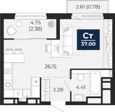 Продается 1-комн. квартира-студия в ЖК "Беринг" на 14 этаже. Квартира без отделки, новый владелец может сделать ремонт по индивидуальному дизайн-проекту. Общая площадь: 37 кв.м., площадь гостиной 26.15 кв.м., из которых 5 кв.м. выделено под кухонную зону. Все окна выходят на одну сторону. В квартире один балкон, один совмещенный санузел. Высота потолков 2.75 м.
