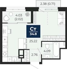 Просторная однокомнатная квартира-студия в ЖК "Беринг" на 11 этаже. Квартира без отделки, полностью готова к чистовой отделке и дальнейшему ремонту. Общая площадь: 34.8 кв.м., площадь гостиной 25.22 кв.м., из которых 5 кв.м. выделено под кухонную зону. Все окна выходят на одну сторону. В квартире один балкон, один совмещенный санузел. Высота потолков 2.75 м.