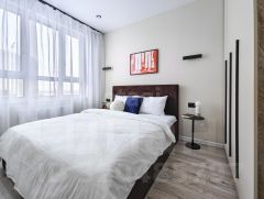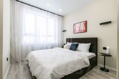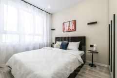 • В спальне кровать с подъёмным механизмом — функциональность и комфорт.