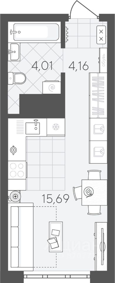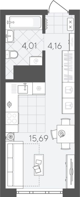 Студия площадью 23.86 кв.м на 1 этаже — уютное пространство, которое легко адаптировать под любые сценарии проживания. Продуманное расположение зон создаёт комфорт для жизни и отдыха.