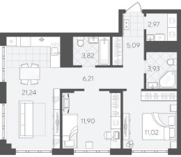 Квартира с 2 спальнями площадью 66,18 кв.м