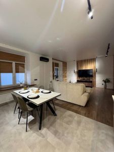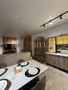 • Просторная кухня-гостиная (37 м²) с современным оборудованием: варочная панель, духовой шкаф, посудомоечная машина и стильная вытяжка.