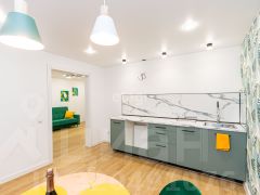 Ремонт в квартире делали для себя, поэтому использовались только качественные материалы. На стенах обои под покраску, на полу кварц-виниловый ламинат в едином исполнении премиум класса, потолок натяжной с точечными светильниками и возможностью выбора режима освещения. В ванной и санузле установлена надежная сантехника, теплый пол с регулятором, имеется вывод под бойлер, предусмотрен доступ к счетчикам и возможность установить электровентилятор, а также есть место под шкаф, все продумано и очень удобно. Кухня -гостиная правильной квадратной формы с новым кухонным гарнитуром, который можно дополнить. Под хранение вещей во всю стену в комнате установлен вместительный шкаф-купе, а новый удобный диван для отдыха вам в подарок. При желании зону отдыха можно организовать на балконе. В квартире никто не проживал, поэтому вы станете первыми ее счастливыми обладателями.