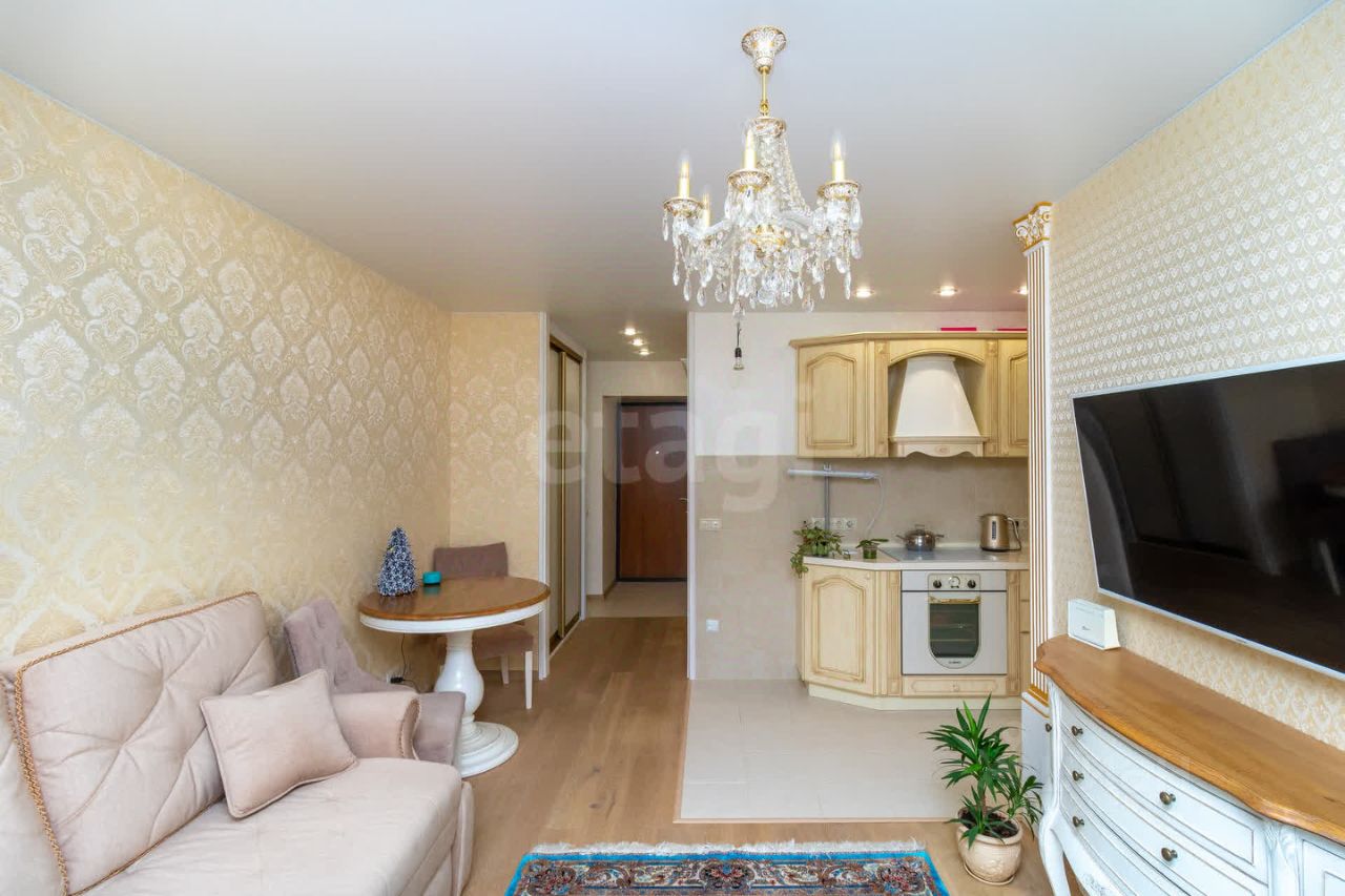 Продам квартиру - студию в одном из самых престижных и востребованных районов города - Европейском. Развитая инфраструктура, отличная транспортная развязка, комфортное соседство, безопасность, радующая глаз эстетика района совершенно обоснованно вызывают восторженные отзывы как самих жителей, так и гостей города. Предлагаемая студия отличается интересными планировочными решениями: вместительная гардеробная и зонированный балкон - лоджия, т.е. есть остекленная лоджия переходящая в открытый балкон, на котором вполне комфортно проводить теплые вечера, любуясь великолепными видами. В квартире сделан качественный ремонт. Зона коридора и часть кухни покрыта венецианской штукатуркой, в зале поклеены итальянские текстильные бесшовные обои, пол - брошированный дуб.
