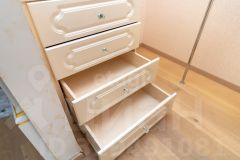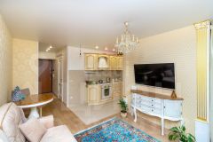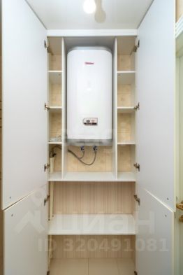 В квартире остаётся кухонный гарнитур, встроенный шкаф купе в коридоре, встроенный шкаф в ванной комнате, встроенная гардеробная, водонагреватель на 100 литров, электрический полотенцесушитель, зеркала.