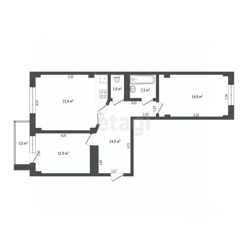 Продается просторная двухкомнатная квартира в Заречной части города, площадью 67.9 м² расположена на 8-м этаже кирпичного дома 2014 года постройки.