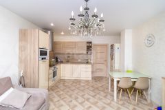 Объединенная кухня-гостиная (21,4 м²) с выходом на балкон