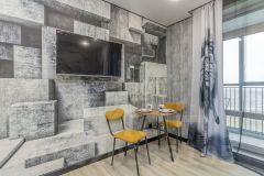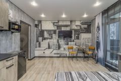 Интерьер квартиры разработан профессиональным дизайнером с использованием стильных и современных отделочных материалов. Каждая деталь внимательно продумана, чтобы создать уютную и современную обстановку.