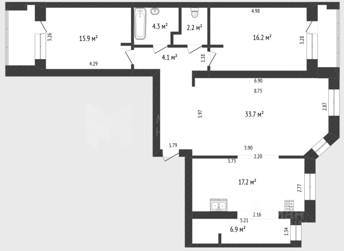 Индивидуальная планировка- большая кухня , гостиная и две изолированных комнаты. В каждой спальне лоджия.