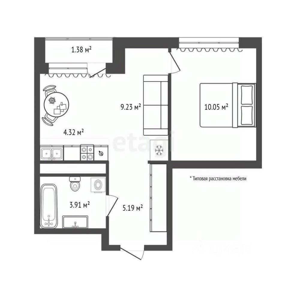 Площадь 32,7 м²