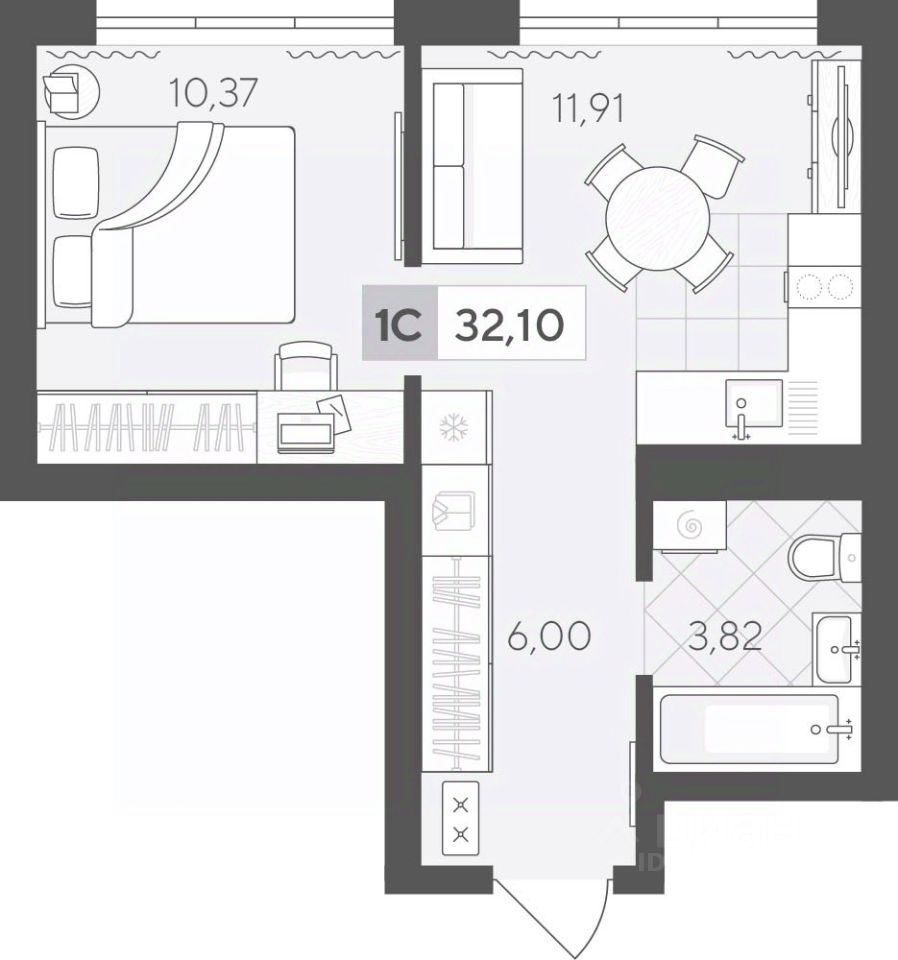Продаётся 1-комнатная квартира в строящемся доме (ГП 2 (Сергея Корепанова, 34)), срок сдачи: IV-кв. 2027, общей площадью 32.1 кв.м., на 2 этаже. Новый жилой комплекс "Скандиа. Квартал у Леса" от Специализированного застройщика "СКАНДИА У ЛЕСА" расположен в г. Тюмень на ул. Бориса Прудаева.