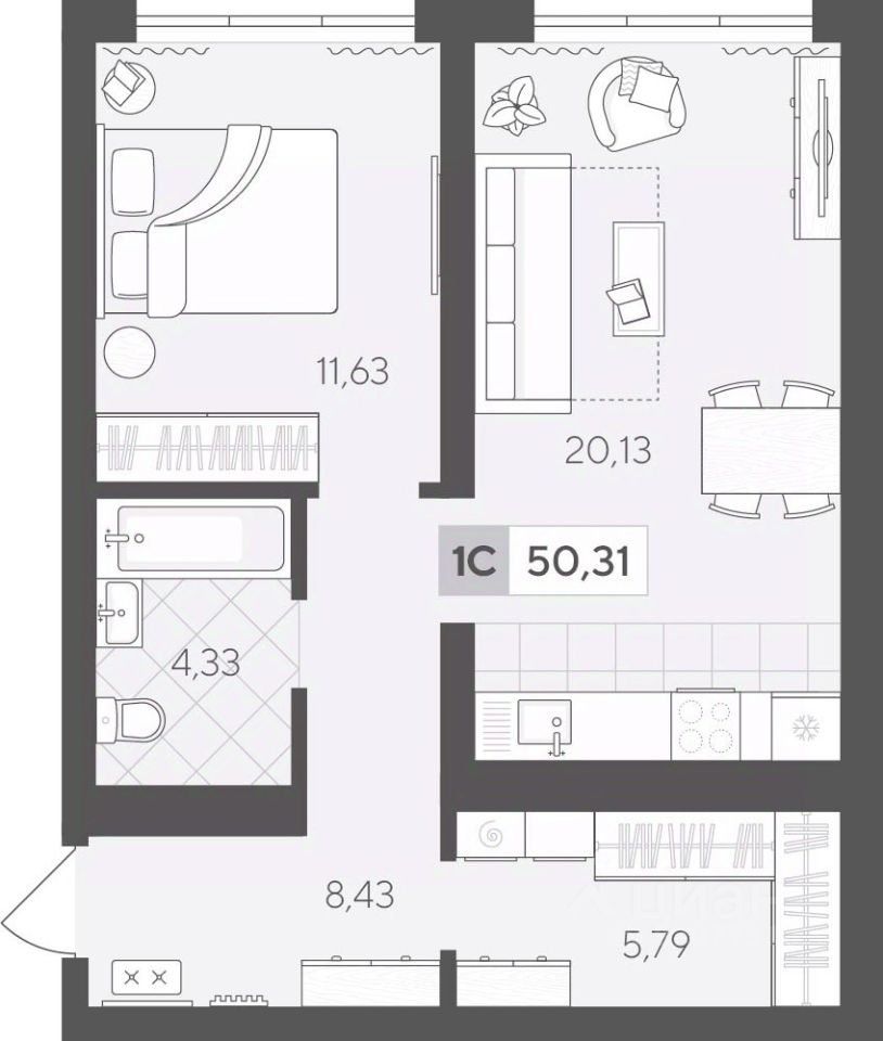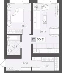 Продаётся 1-комнатная квартира в строящемся доме (ГП 2 (Сергея Корепанова, 34)), срок сдачи: IV-кв. 2027, общей площадью 50.31 кв.м., на 3 этаже. Новый жилой комплекс "Скандиа. Квартал у Леса" от Специализированного застройщика "СКАНДИА У ЛЕСА" расположен в г. Тюмень на ул. Бориса Прудаева.