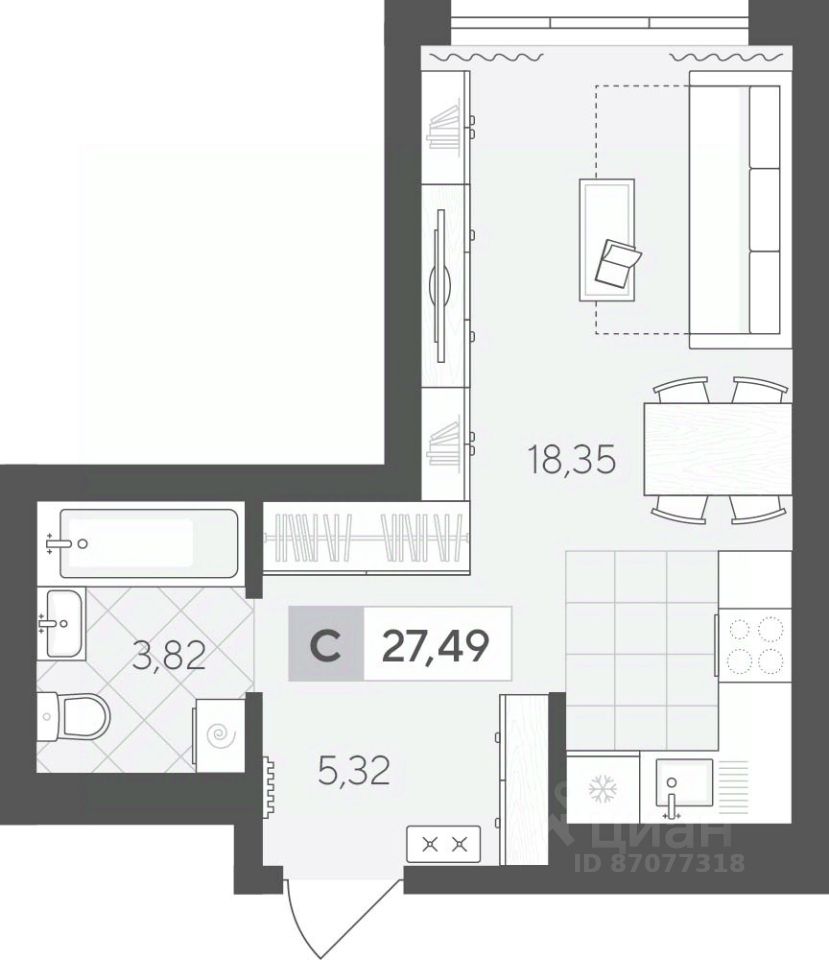 Продаётся студия в строящемся доме (ГП 2 (Сергея Корепанова, 34)), срок сдачи: IV-кв. 2027, общей площадью 27.49 кв.м., на 4 этаже. Новый жилой комплекс "Скандиа. Квартал у Леса" от Специализированного застройщика "СКАНДИА У ЛЕСА" расположен в г. Тюмень на ул. Бориса Прудаева.