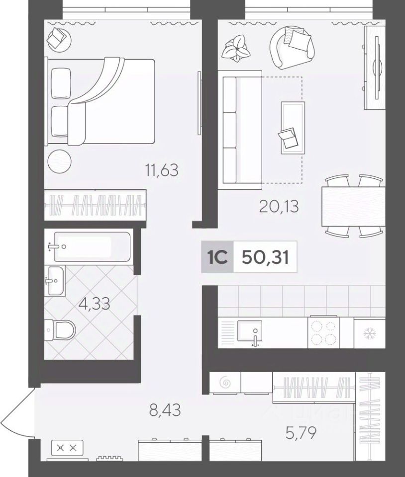 Продаётся 1-комнатная квартира в строящемся доме (ГП 2 (Сергея Корепанова, 34)), срок сдачи: IV-кв. 2027, общей площадью 50.31 кв.м., на 4 этаже. Новый жилой комплекс "Скандиа. Квартал у Леса" от Специализированного застройщика "СКАНДИА У ЛЕСА" расположен в г. Тюмень на ул. Бориса Прудаева.