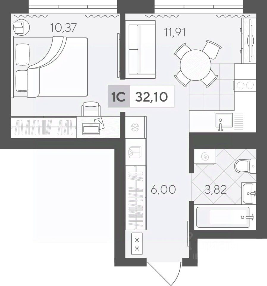 Продаётся 1-комнатная квартира в строящемся доме (ГП 2 (Сергея Корепанова, 34)), срок сдачи: IV-кв. 2027, общей площадью 32.1 кв.м., на 5 этаже. Новый жилой комплекс "Скандиа. Квартал у Леса" от Специализированного застройщика "СКАНДИА У ЛЕСА" расположен в г. Тюмень на ул. Бориса Прудаева.